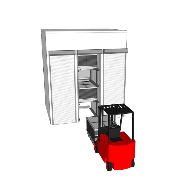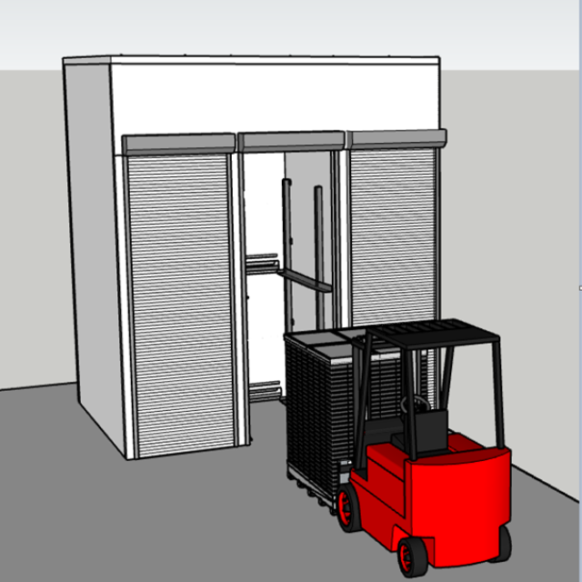 - A forklift driver, moving a Pallet-sandwich, approaches the drying cell